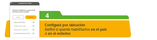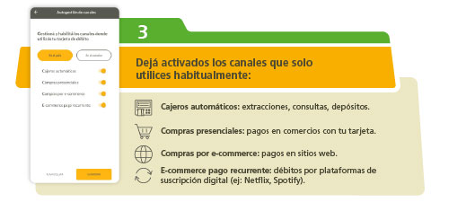 podés habilitar o deshabilitar los canales donde usás tu tarjeta de débito de forma rápida, segura y sin moverte de tu casa.