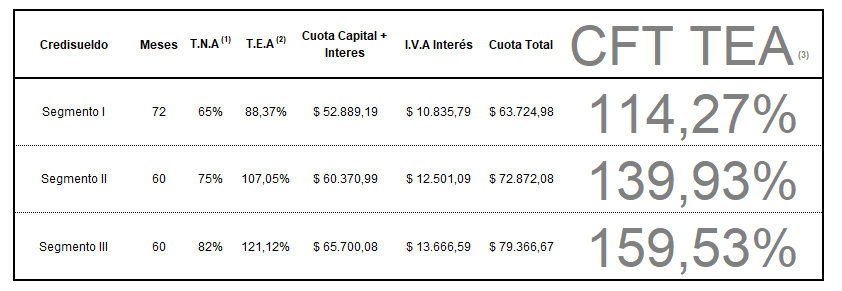 Características:Primera cuota calculada para un préstamo de $ 1.000.000.