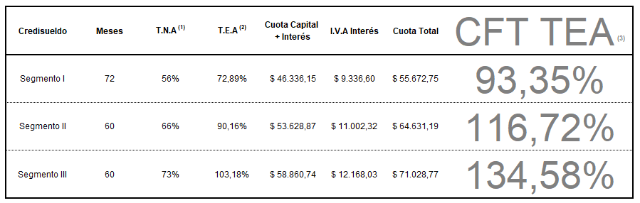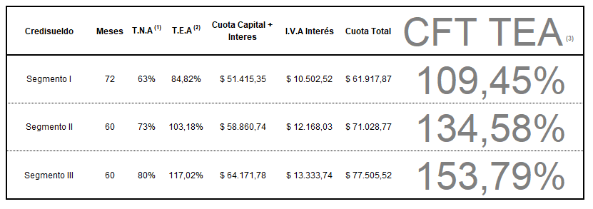 (3) Costo Financiero Total expresado en Tasa Efectiva Anual.