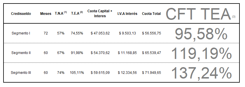 El CFT incluye capital, intereses, e IVA sobre los intereses.
