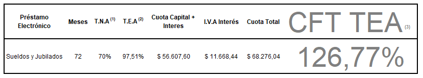 El CFT incluye capital, intereses, e IVA sobre los intereses.