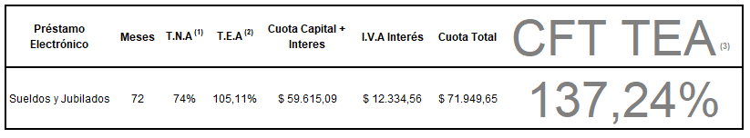 El CFT incluye capital, intereses, e IVA sobre los intereses.