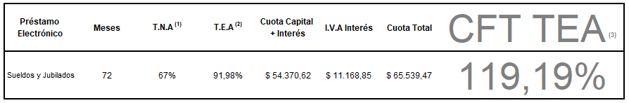 (3) Costo Financiero Total expresado en Tasa Efectiva Anual.